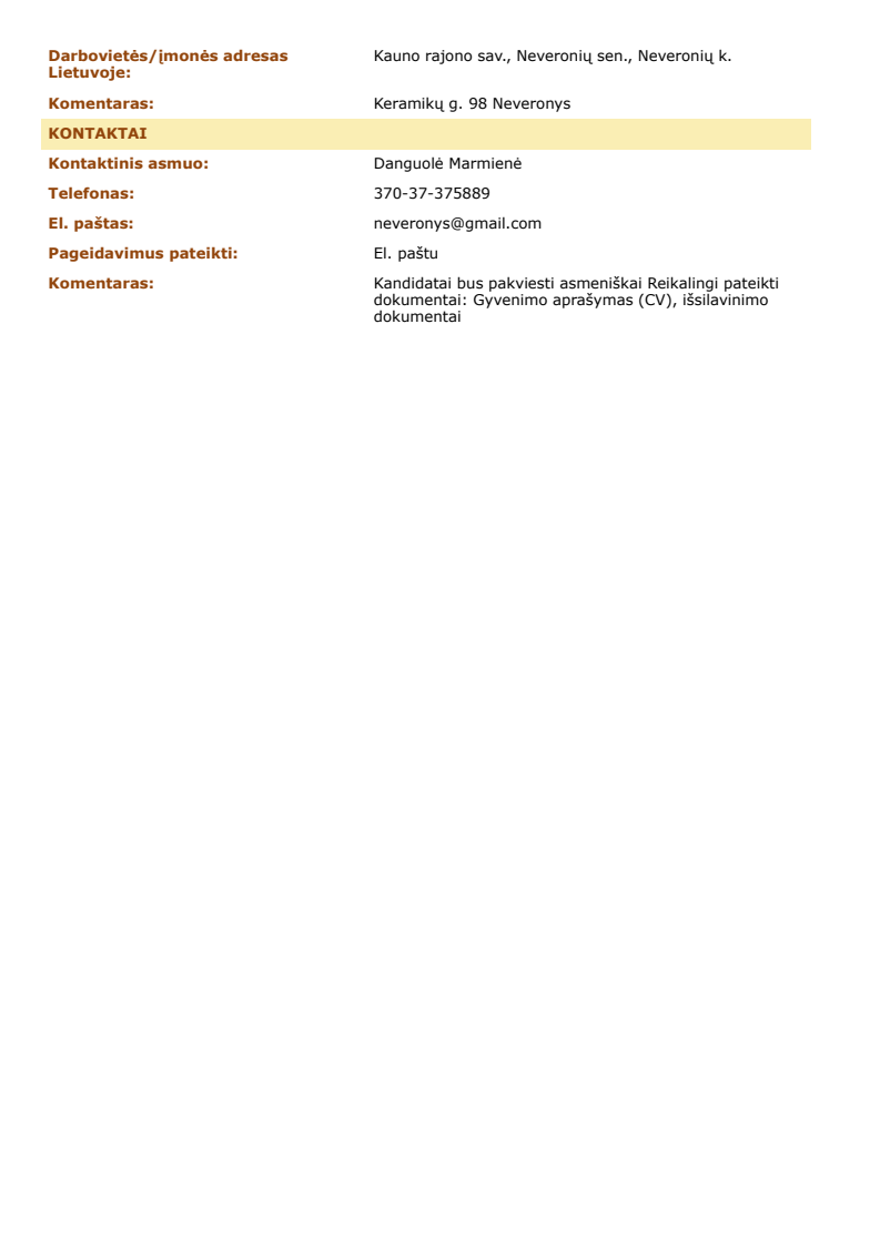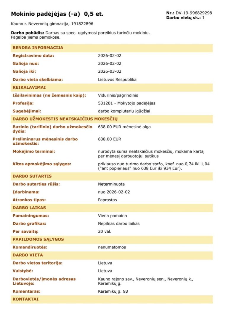 Darbo skelbimai