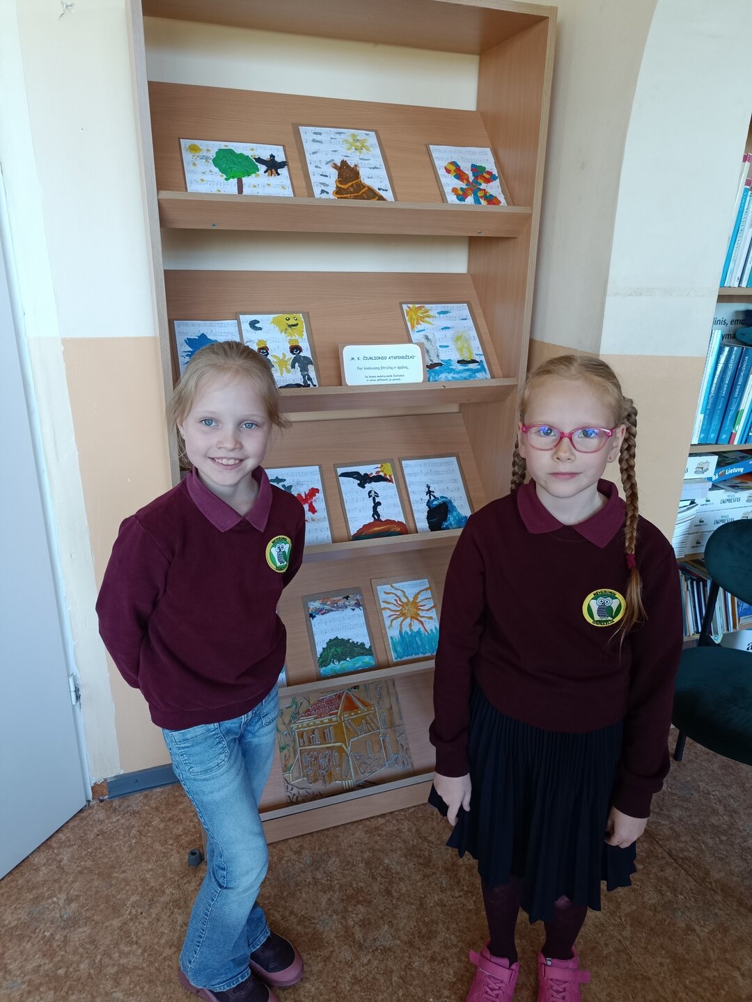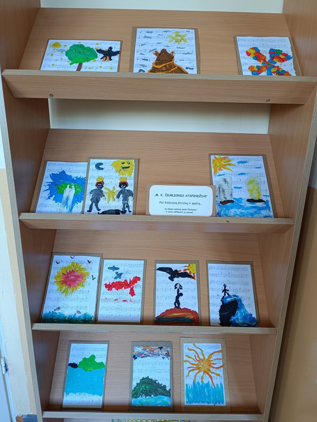 Mokinių kūrybiniais darbais galima pasigrožėti gimnazijos bibliotekoje.