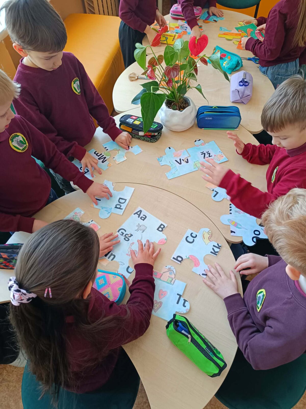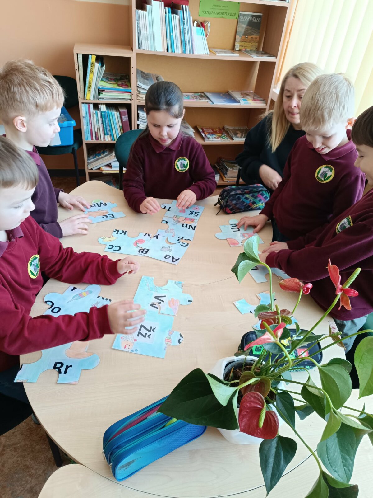 Paslapčių skrynelėje slėpėsi užuomina apie pasakaitę „Stebuklas miške“, kuri sudomino ir paskatino vaikus klausytis. Mokinukai klausėsi eiliuotos E. Mieželaičio pasakos „Zuikis puikis“, aptarė girdėtą tekstą. Vėliau jie dėliojo abėcėlės dėliones, taip įtvirtindami raidžių pažinimą.
