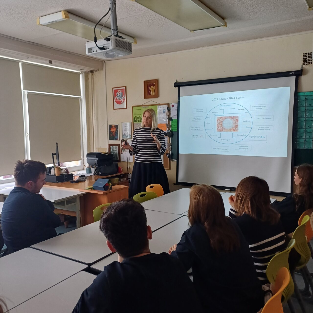 Vasario 24 dieną IV klasių mokiniai turėjo išskirtinę galimybę susitikti su Kauno technologijos universiteto Ekonomikos studijų programų vadove doc. dr. Jovita Vasauskaite. Nuoširdžiai dėkojame pranešėjai už įkvepiantį ir prasmingą susitikimą, kurio metu mokiniai galėjo iš arčiau susipažinti su ekonomikos studijų kryptimi bei jos teikiamomis galimybėmis. Ypač vertinga buvo asmeninė verslo patirtis ir įžvalgos, atskleidusios, kad ekonomika – tai ne tik skaičiai ar teorinės žinios, bet ir gebėjimas strategiškai mąstyti, vertinti rizikas, analizuoti duomenis bei suprasti nuolat kintančią rinką ir vartotojų poreikius. Susitikimo metu mokiniai buvo supažindinti su KTU Ekonomikos bakalauro studijų programa – modernia, į praktiką orientuota ir darbo rinkos poreikius atliepiančia studijų kryptimi https://stojantiesiems.ktu.edu/programme/b-ekonomika/. Džiaugiamės, kad mūsų mokiniai turėjo galimybę sužinoti apie studijas, kurios suteikia tvirtus ekonomikos ir finansų pagrindus, ugdo analitinį mąstymą, duomenų analizės gebėjimus bei verslumo kompetencijas. Tikime, kad tokie susitikimai padeda jauniems žmonėms atsakingiau rinktis savo ateities kelią ir drąsiau siekti užsibrėžtų tikslų.